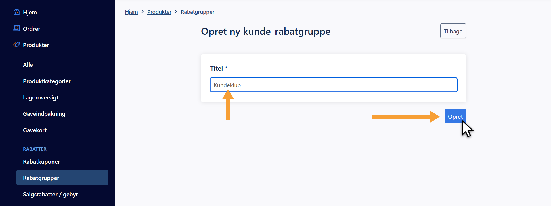 • Navngiv din kunderabatgruppe og klik på Opret: